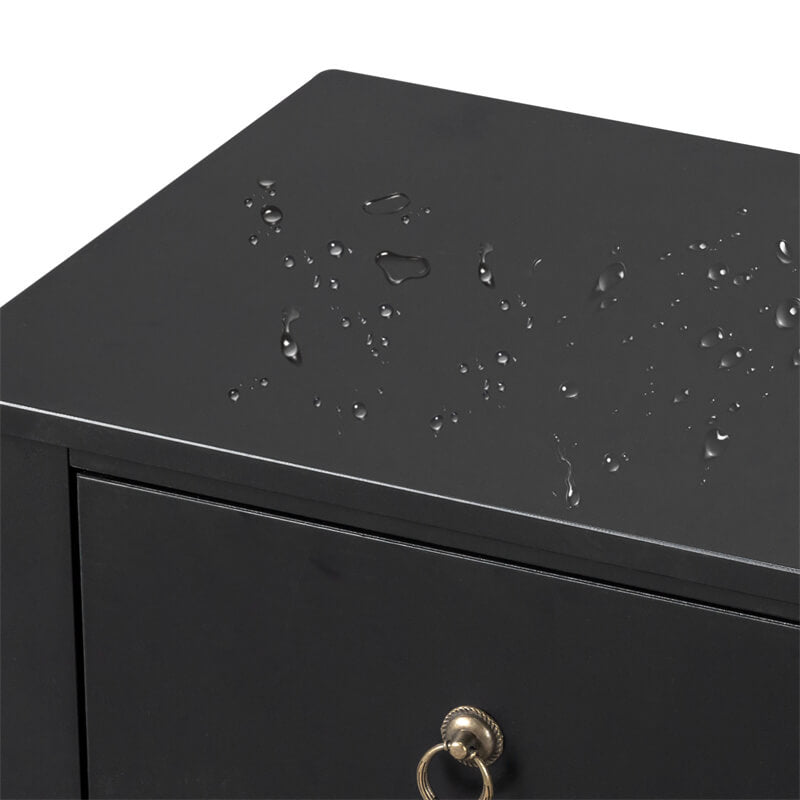Our nightstand set is made of premium medium-density fiberboard (MDF) material that is thick and durable, ensuring solid support for the nightstand itself and any items placed on it. The exquisite workmanship and sturdy, smooth surface contribute to its long-lasting use. In addition, the water-resistant surface makes it easy to clean spills by simply wiping with a damp cloth.