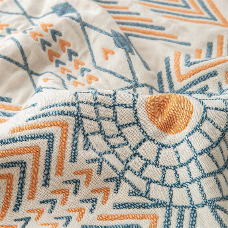 This boho blanket has a very chic vintage look. Featuring an elegant linear geometric pattern on both the front and back, our cotton blanket combines a variety of elements with bright vintage colors to create a unique look.