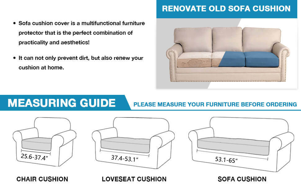 Wide Usage: ou can use it to cover not only the seat cushions of your sofa, but also the back cushions as long as they can be separated from the sofa.