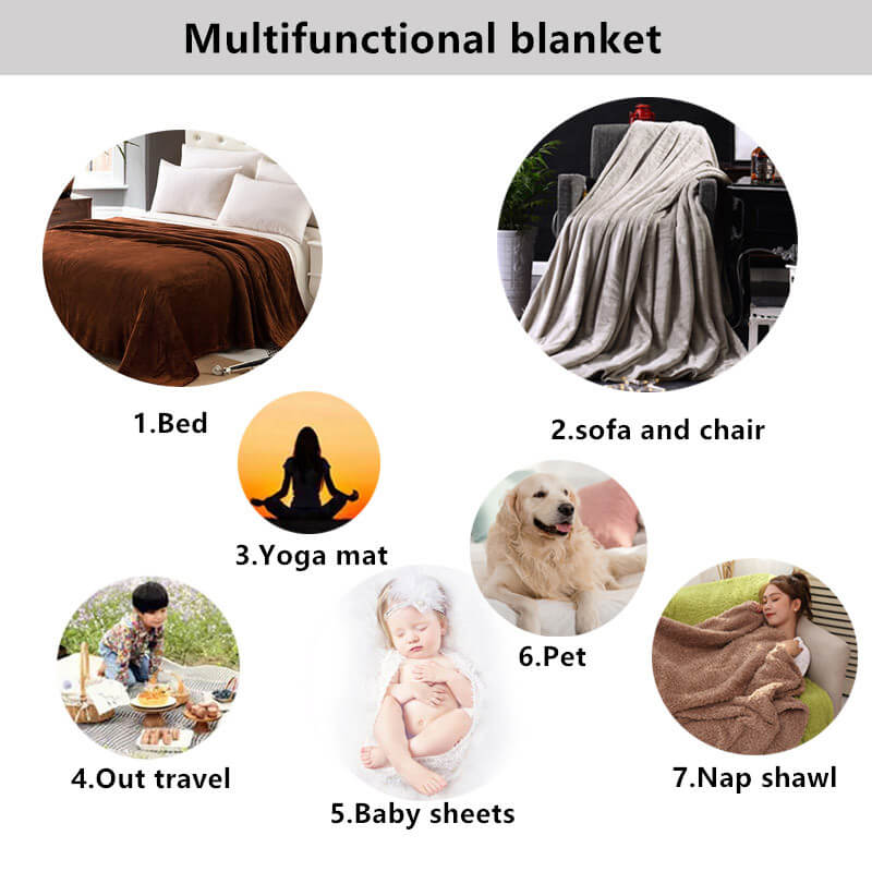 👍Multi-purpose-This flannel blanket is soft and skin-friendly, so babies can also use it.When you are watching a TV series on the sofa, you can wrap a blanket or use it as a sofa cover to sit comfortably. Of course, it can also be used as a blanket on the bed to relax. It is also your ideal partner for winter camping and backpacking.