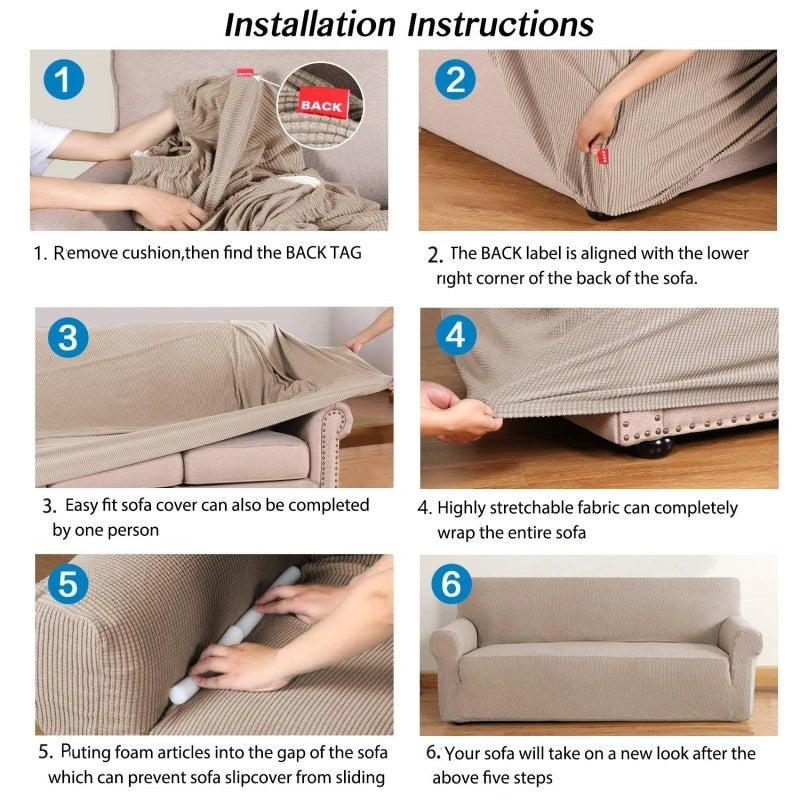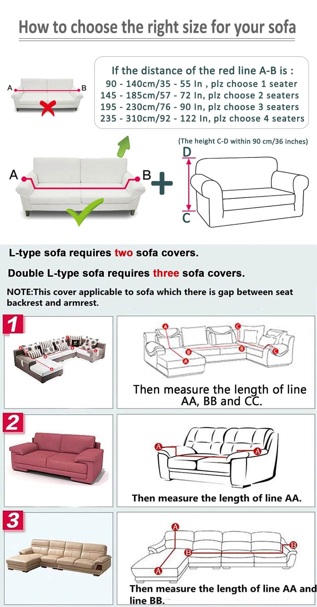 The high elastic couch covers for sofa is flexible, soft, slip resistant for long-term comfort and fits most sofas. As long as you measure the size of the sofa, Lightweight stretchable fabric design to the shape of your sofa.