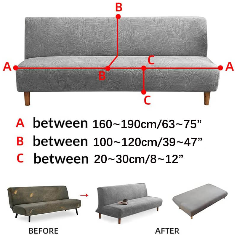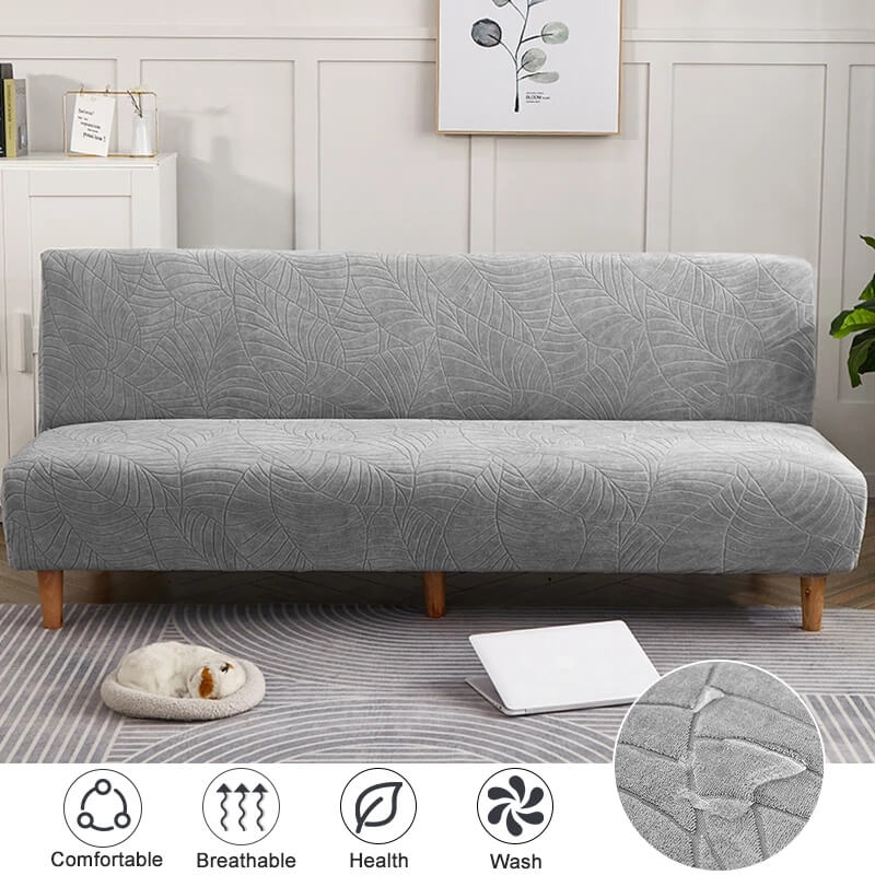 Our 1 piece futon slipcovers are made of spandex jacquard fabric which is super elastic and will satisfy the needs of most homes. It could fit your armless sofa perfectly, fully covering your futon, prolonging its service life.