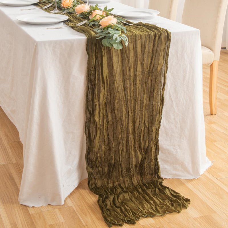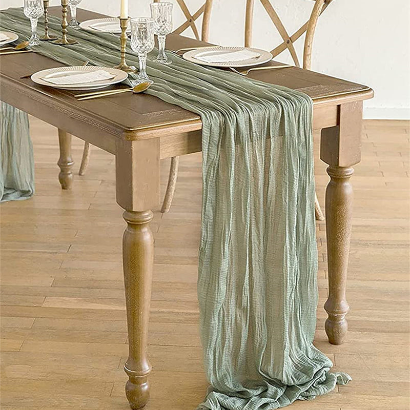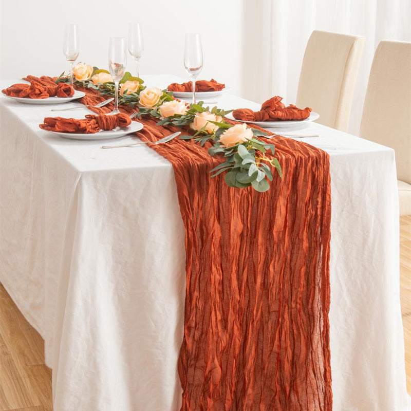 Premium Material: The table runners are made of cotton cheesecloth with wrinkles. Has intentional wrinkle/fold texture style. The thickness is just right to maximize durability while allowing you to drape them effortlessly.